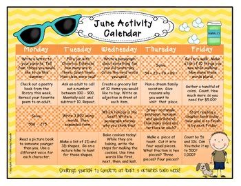 Read Online summer activity calendar for second grade Library Binding Library Genesis